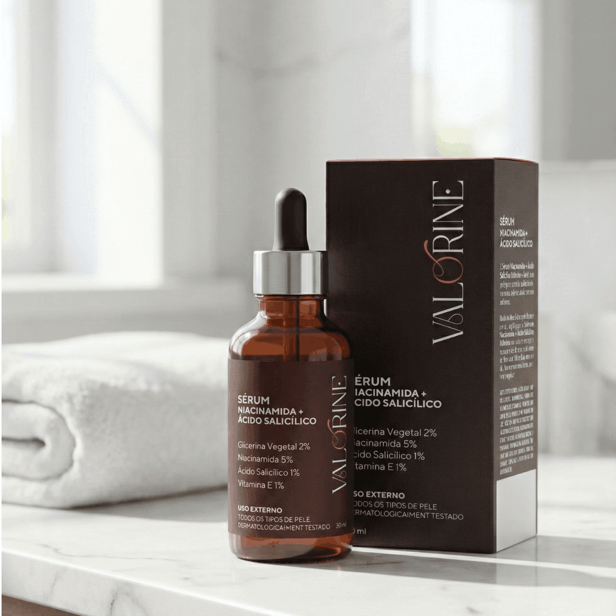 Ideal para um tratamento que busca equilibrar a oleosidade, clarear e renovar a pele, promovendo um viço mais puro e natural. Sua formulação é pensada para uso contínuo, proporcionando conforto, sensação agradável e resultados visíveis com o uso regular. Ideal para rotinas de autocuidado, pode ser utilizado sozinho ou combinado com outros produtos da linha Valorine, potencializando os resultados do tratamento facial.ADVERTÊNCIAS: Não utilizar em crianças. Manter em local seco, fresco e ao abrigo da luz. Não aplicar sobre a pele irritada ou lesionada. Em caso de sensibilização, suspenda o uso e procure orientação médica. Evite contato com os olhos. Caso ocorra, enxágue imediatamente com água em abundância.”